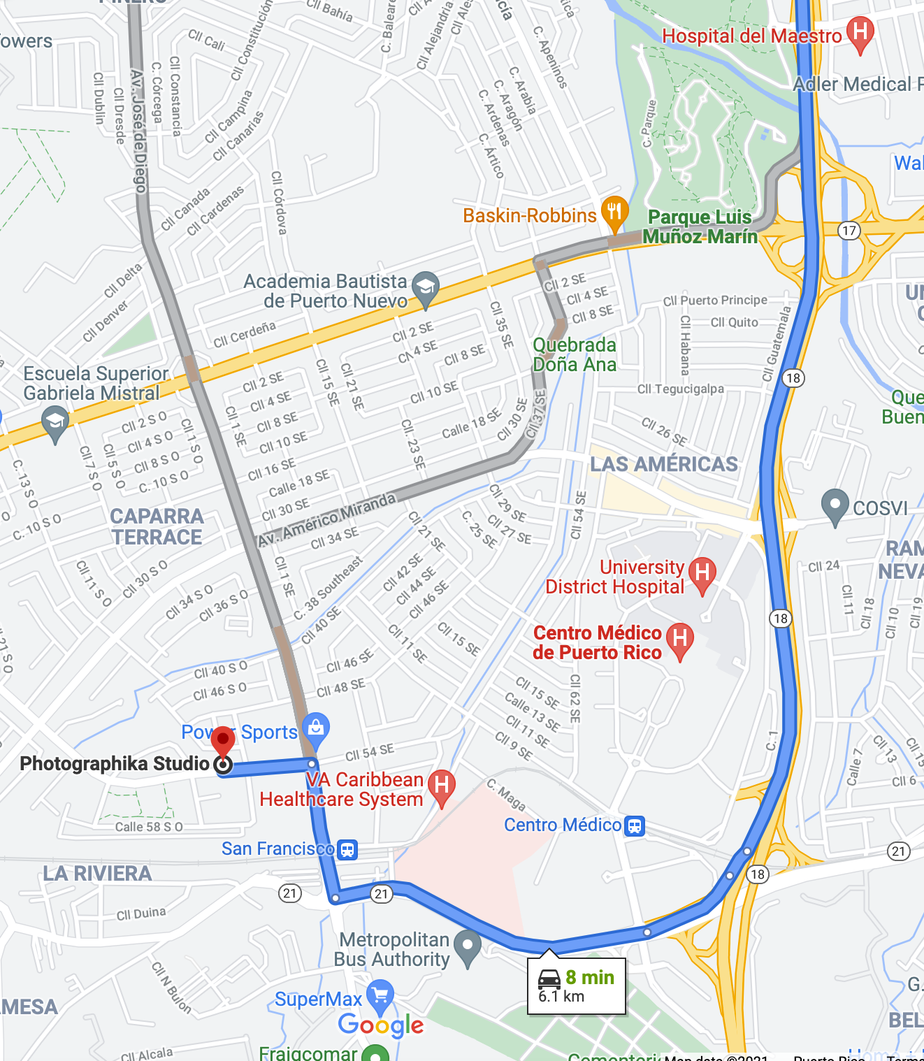 - Al final de la Av. José Kiko Custodio/PR-21, doblar a la derecha en la Ave. De Diego.